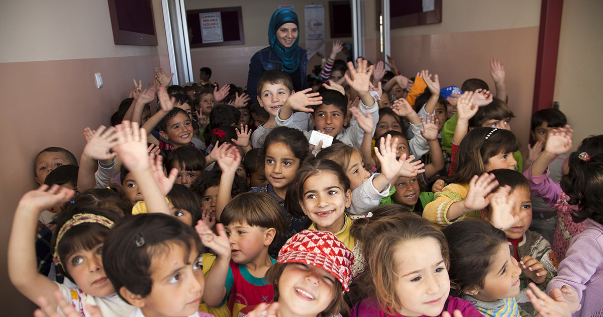 Give a blackboard to a class of refugee children
